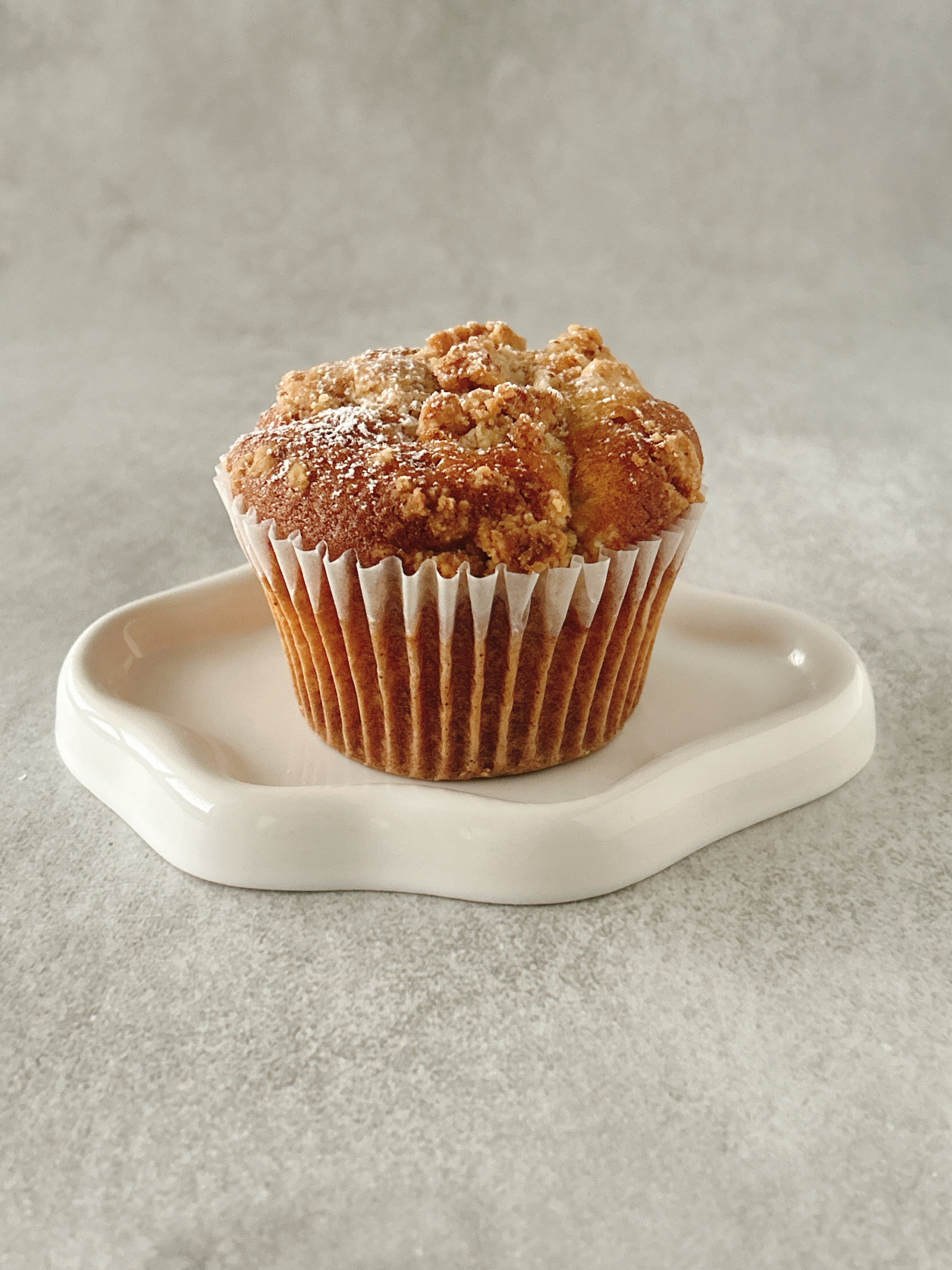 オーガニックバナナをたっぷりと加えて焼いた王道マフィン。シナモンがほんのり香るクランブルをのせて焼いてます。バナナの優しい甘さがじんわりひろがります。